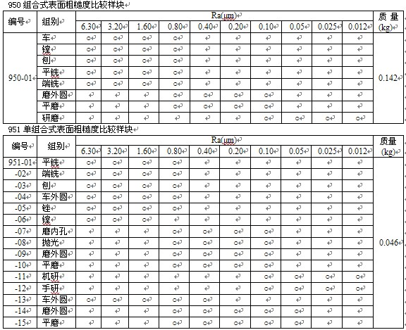 950組合式表面粗糙度比較樣塊,表面粗糙度比較樣塊是用比較法檢查零件表面粗糙度的一種量具,在機械工業(yè)生產(chǎn)中得到廣泛的應用。符合GB標準。