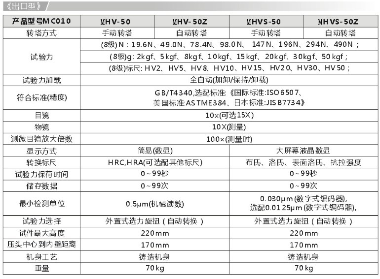 MC010系列(MHV-50、MHV-50Z、MHVS-50、MHVS-50Z)